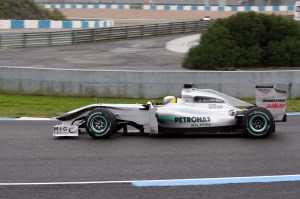 Lewis Hamilton’s best time came during one of those rare times that the track was fairly dry so the overall list may not be the best comparison of performance. For example, the Ferraris which were the fastest cars at the Valencia test are near the back of the pack this week. The Scuderia were busy working on long distance runs with Alonso doing stints of upwards of 40 laps while Lewis likely laid down a mock qualifying run to set his fast time. Also surprisingly far down the order is Red Bull Racing. It would be safe to assume that they were just shaking down the car to make sure that the car would hold together. After all, Adrian Newey had the best designed car last year and it wasn’t even optimised for the double diffuser.