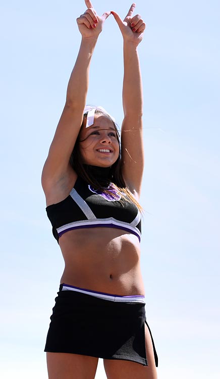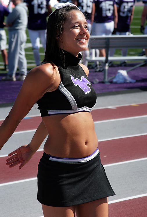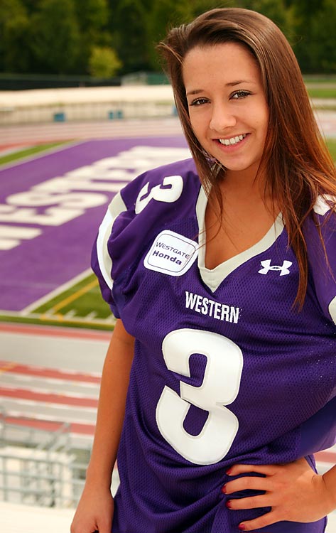 For the third time in the 2009-2010 season, the Western Mustangs’ legendary cheerleading squad has picked up the coveted Sports Illustrated Cheerleader of the Week award. In September, Danielle Hilliard won. In January, Tiana Enhorning picked up UWO’s second award of the season. Now, second-year cheerleader Ellyn D’Uva has collected the honour yet again for the Stangs. After the jump, catch her SI interview and pics.