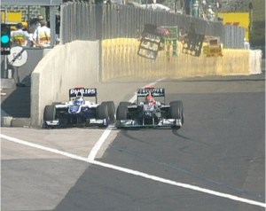 The question now becomes whether that was hard racing or dangerous driving. In my opinion, it’s a bit of both. Was going to the pit wall excessive? Yes. But was Schumacher entitled to defend his position? Yes. Nothing said that Rubens had to keep his foot in it. Nothing said that Rubens could have tried the other side because he had enough of a run to clear Michael on the outside. One thing we did learn from this is that despite his lack of speed, Michael hasn’t lost that killer instinct that made him a seven-time World Drivers’ Champion. I can’t fault him for still having that drive.