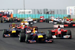 Things went half according to script when the lights went out. Vettel got away well enough to hold onto the lead. Webber didn’t get as good a start and was pipped by Fernando Alonso heading into the first turn. And that’s how the race progressed until the safety car came out for debris. That caused the race to be flipped on its head.