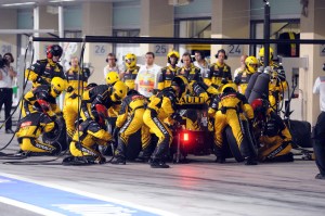When the race resumed, the top five held station with Button pulling away from Alonso. However, if the order held, Alonso would be the World Champion by 2 points with 258 to Vettel’s 256. Webber was struggling for grip on the super-soft tires and pitted early to switch to the medium tires, this weekend’s harder compound. The safety car had bunched the field up and caused Webber to fall behind some of the cars that pitted under the safety car. Ferrari made their call to Alonso to change tires shortly afterward. Alonso was able to maintain position ahead of Webber but ended up directly behind Petrov who he would be stuck behind for the remainder of the race. He was also losing distance Nico Rosberg who was running ahead of Petrov. Being held up by Petrov also allowed Robert Kubica to pit and stay ahead of the Russian and Alonso.