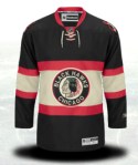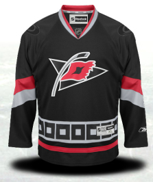 Black jerseys were cool 15 years ago. Now, they’re just cliché. And when you add in bad logo decisions like the hurricane warning flag on a hockey stick, the jersey just gets corny. That’s pretty bad considering how unidentifiable their regular logo is. And what’s the deal with the black squares at the bottom? The red and black stylized storm flags work on the home and away jerseys so why not keep that here?