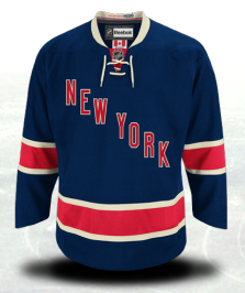 The Rangers also get a third jersey for the first time since the switch to the Reebok Edge jerseys. This one is in the dark blue colour used in the Rangers last third jersey but this one has “New York” written on it in a throwback to some of their older jerseys instead of Lady Liberty’s head. Not a bad jersey to celebrate their 85th anniversary.