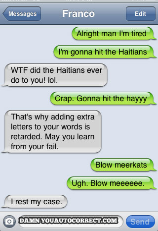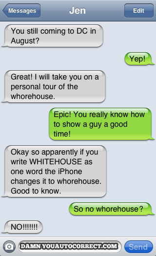 It’s time for another post in our best of the interweb series. Today, we go back to the internet’s best place to find Apple-caused text messaging errors, Damn You Auto Correct. As we all know, if you have an iPhone, its auto correct feature is likely going to lead to some embarrassing mistakes with hilarious consequences. So today, we have the best auto correct failures on DYAC.