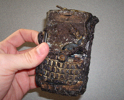 Seriously? We can’t fix that, it is burned to a damn crisp! FYI that is a Blackberry, and you may as well buy a new one – that one is ruined.