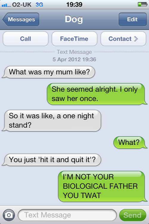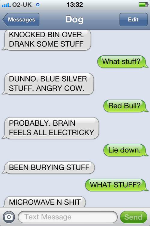 Dogs try to talk to us but they aren’t necessarily the best at articulating it in a way we can easily understand (unless you’re Lassie, who can easily indicate where Timmy got himself stuck again). But what if your dog could text you? It would probably be a little bit like our new favourite Tumblr Text From Dog.