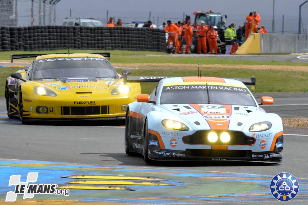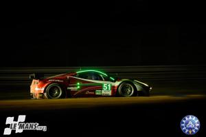 The lead changed hands between the #51 Ferrari and the #74 Corvette as the sun set. However, the battle quickly ended when a botched pit stop caused the left-rear tyre to come off at the exit of the Dunlop Chicane. The damage caused by dragging the car around some eight miles on three wheels forced lengthy repairs and took the car out of contention. Punctures for the #59 Ferrari and the #97 Aston Martin dropped them off the AF Corse Ferrari’s tail. From there, the #51 car driven by Giancarlo Fisichella, Gianmaria Bruni and Toni Vilander were able to coast to victory by three laps over the #59 Luxury Racing 458.
