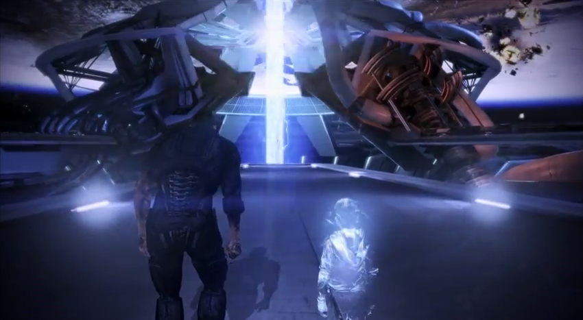 There are a couple of ways of thinking about the Refusal ending. It does confirm the fact that BioWare has been reading the forums and watching YouTube. When I first triggered the ending with a bullet to the Star Child’s face, I was immediately reminded of the college professor who dissected the endings, showing how they made no sense in the thematic context of the game, who said that he would empty his unlimited ammo into the Star Child if the same final options returned in EC. The option to refuse action reminded me of a line in the Angry Joe Show’s look at the original ending in which Joe says he wanted his Shepard to reject the Star Child’s options and let his forces fight the Reapers, only making a decision if they’ll be defeated. (Joe also wanted to shoot the Star Child. That says something about the ending when so many people want to pull the trigger and blow the little bastard away.)