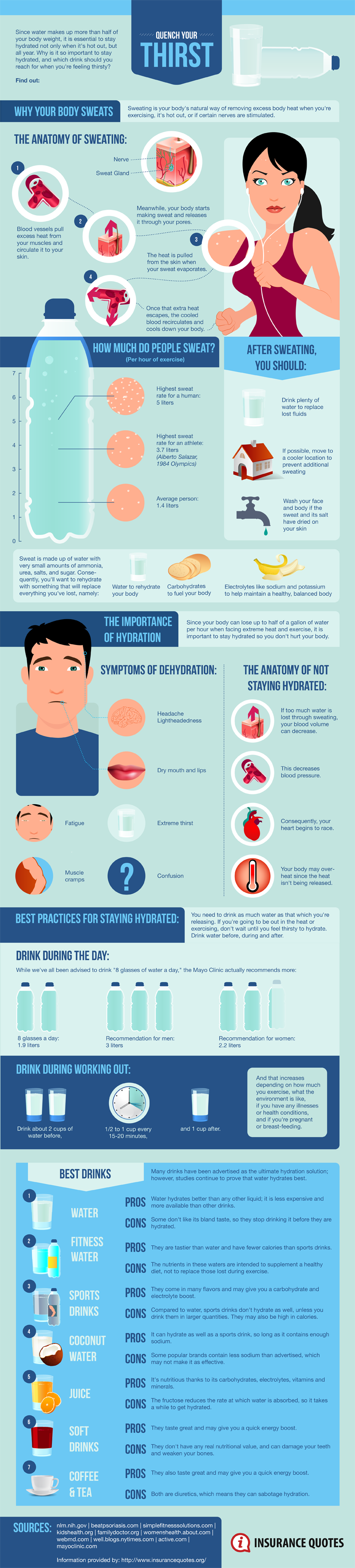 I don’t know if you’ve noticed but it’s fairly warm outside right now. That’s what happens when you’re in the middle of the summer and the thermometer is doing its best to confirm global warming. Since it’s so warm, it’s important for you to know how and why to keep yourself hydrated. Fortunately for you, we have that covered with this infographic.