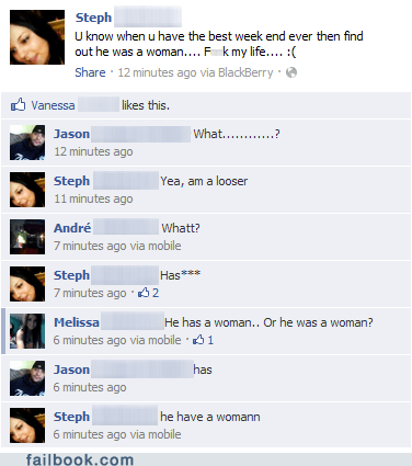 Posted on September 17, 2012September 22, 2012 by Steve Murray Humour Facebook Fails of the Week Every so often, we look at the most spectacular fails that the internet has to offer. Well today, we look at the most spectacular fails that Facebook has to offer. This week, we have five of the best Facebook fails to offer. Click to share on X (Opens in new window) X Click to share on Facebook (Opens in new window) Facebook Click to share on Tumblr (Opens in new window) Tumblr Click to share on Reddit (Opens in new window) Reddit Click to share on Pinterest (Opens in new window) Pinterest More Click to share on LinkedIn (Opens in new window) LinkedIn Click to share on WhatsApp (Opens in new window) WhatsApp Click to share on Telegram (Opens in new window) Telegram Click to share on Pocket (Opens in new window) Pocket Click to email a link to a friend (Opens in new window) Email Click to print (Opens in new window) Print Like Loading... Related