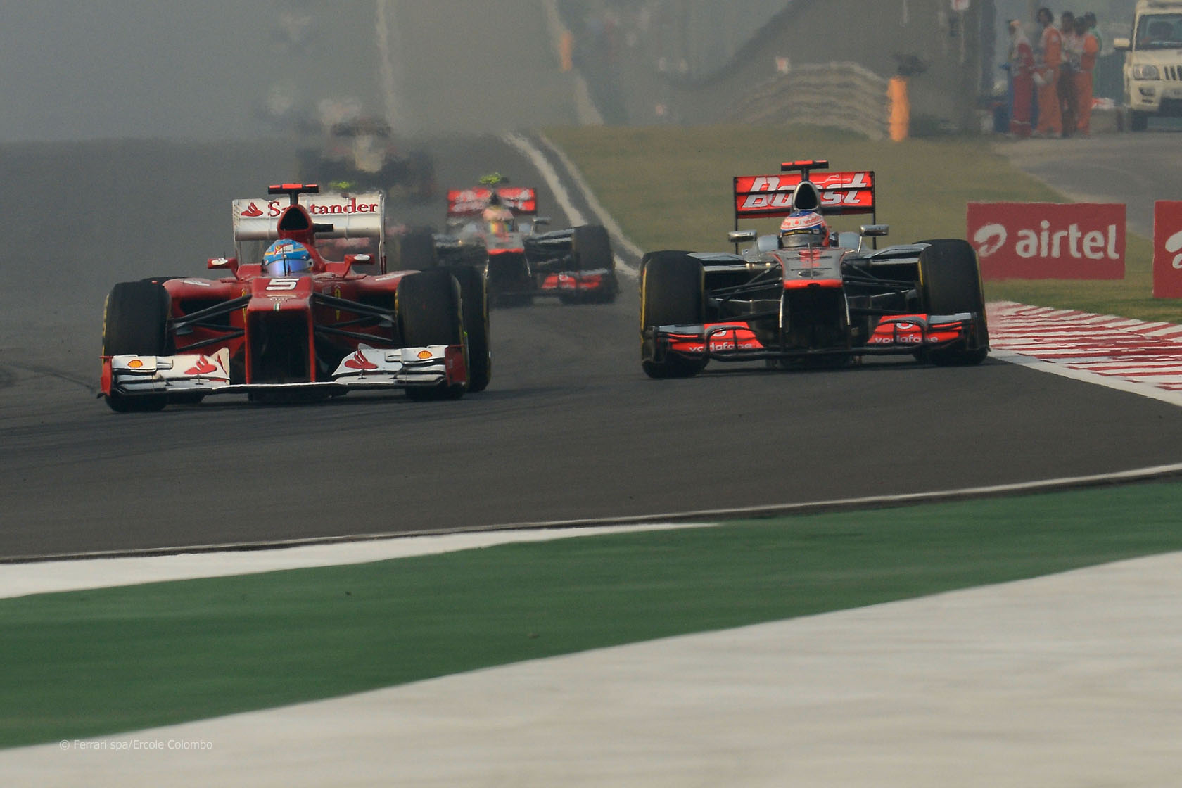 Vettel started on pole and held the lead from the lights. He wasn’t seen again as he led every lap for the third-straight race. Behind him, championship rival Fernando Alonso started 5th but was quickly up to 3rd as he took advantage of the two McLaren drivers battling down the long back straight to move by Hamilton for 4th at Turn 4 on Lap 1 and Button at Turn 4 on Lap 4.