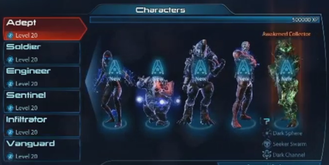 The Collector Adept’s three powers are dark channel (which we have seen before), seeker swarm and dark sphere. The latter two are new powers but we know how Seeker Swarm works when fired against us. I would guess it’ll have a damage over time effect as well as a paralysis.stasis effect. I’m not sure what Dark Sphere is but I’d hope that it will detonate biotic explosions since Dark Channel can prime explosions.